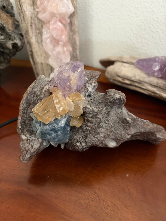 Crystal Lamp - Amethyst, Honey Calcite, Blue Fluorite
