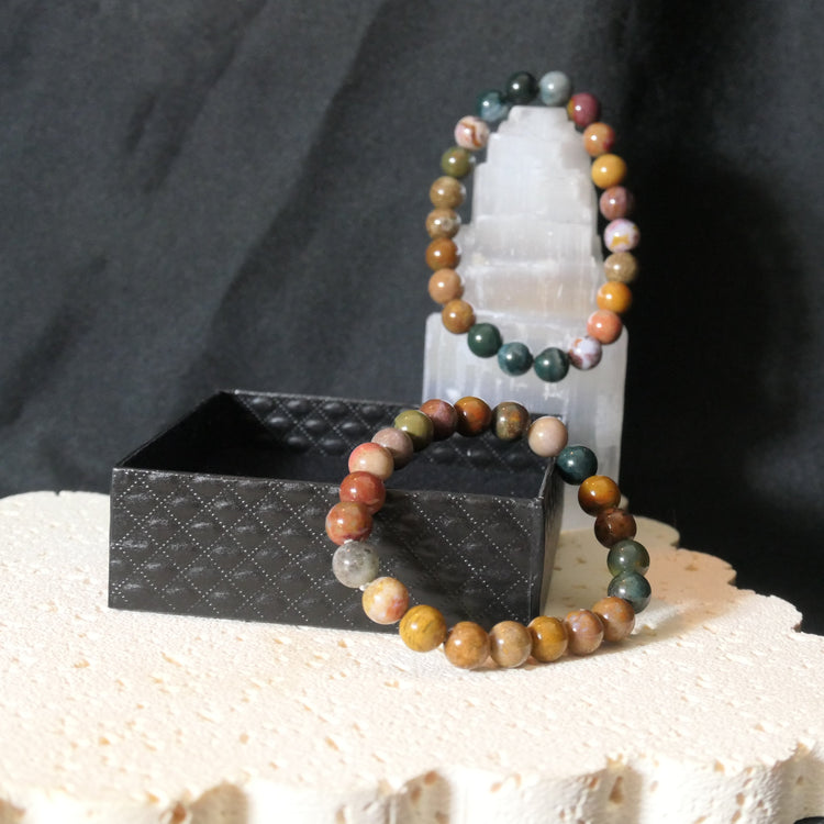 Combining the Ocean (Orbicular) Jasper properties which assist with responsibility and patience, this stone will nurture you through any challenges while gifting you with all the internal resources you need to see them through.