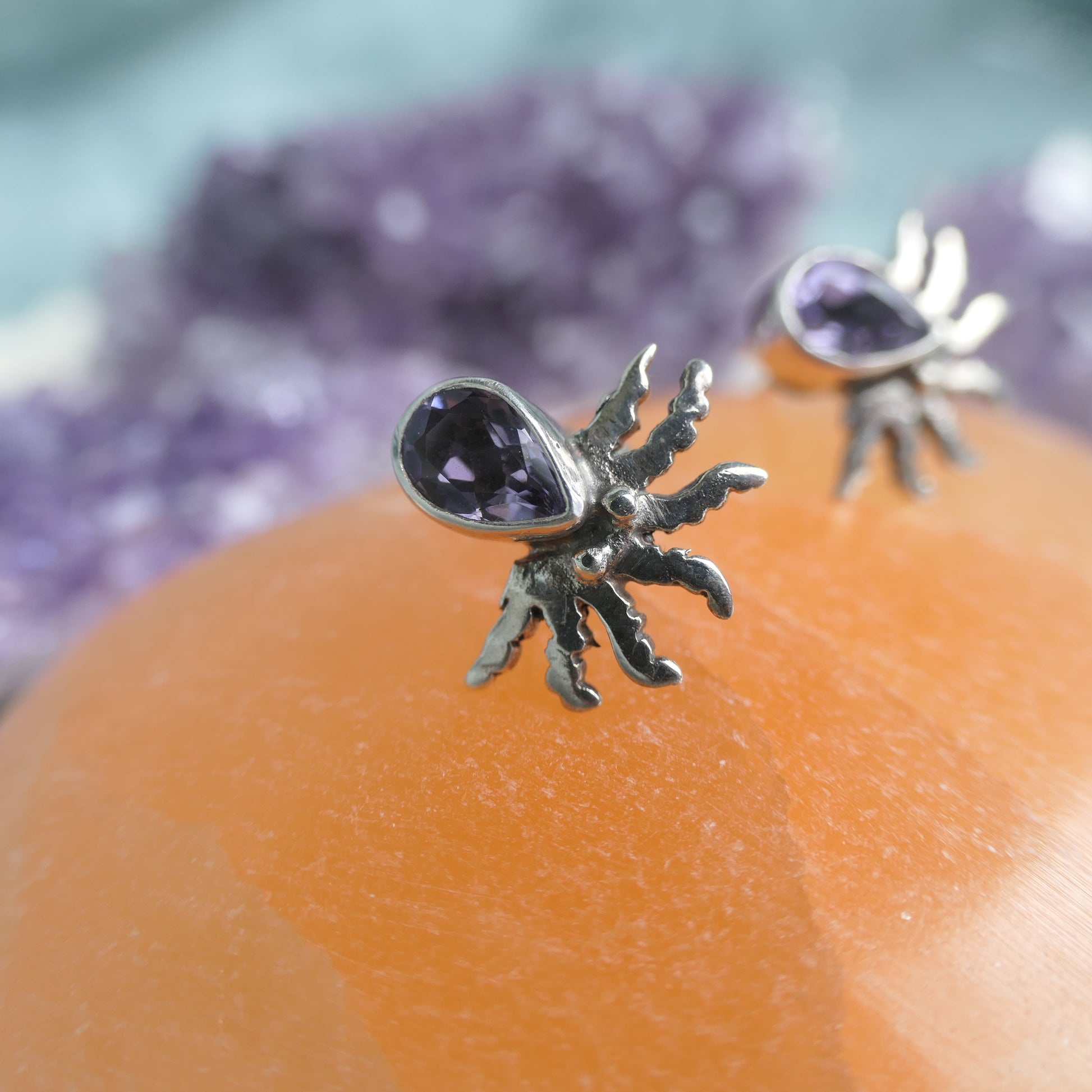 Amethyst Octopus Studs - 925