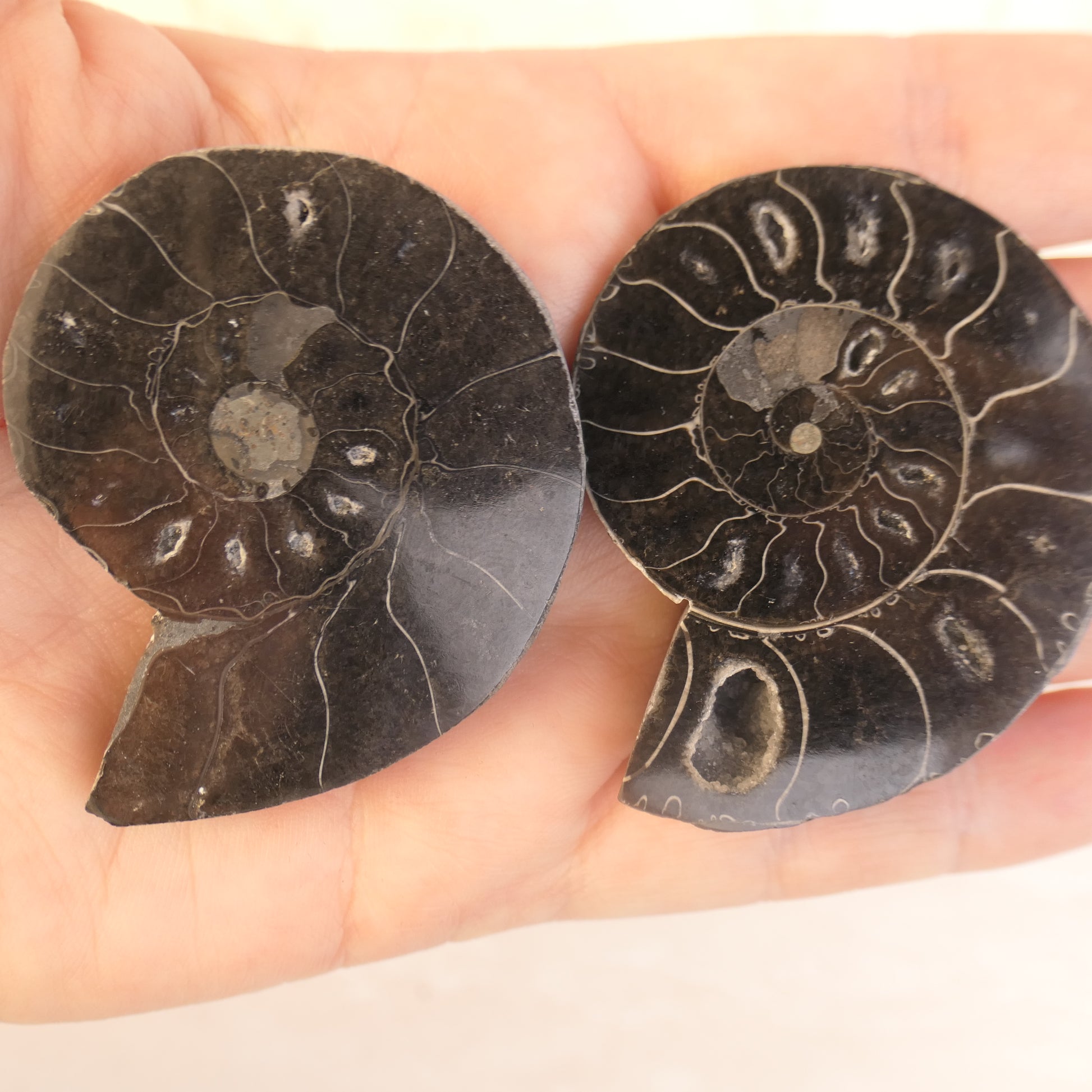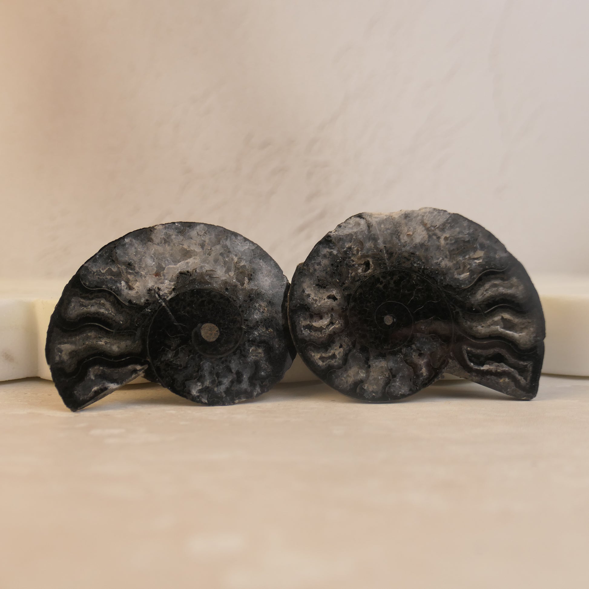 Black Ammonite Pairs with druzy pockets - choose your pair