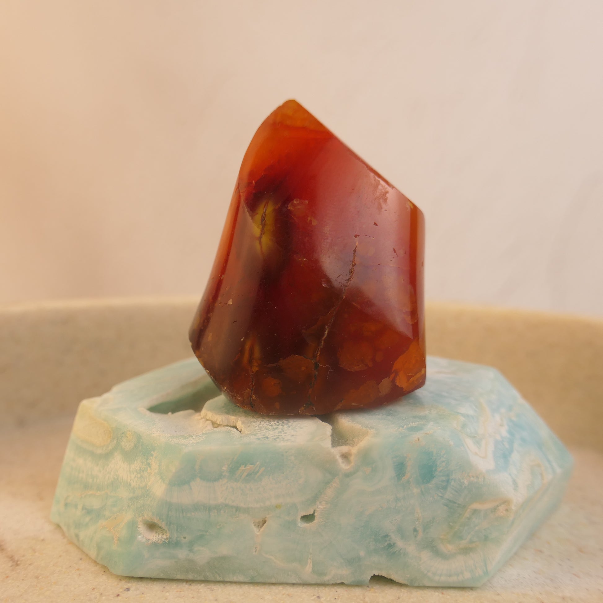 The fiery hues of Carnelian make it the perfect candidate for a flame carving.