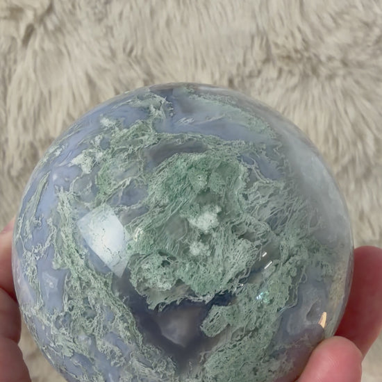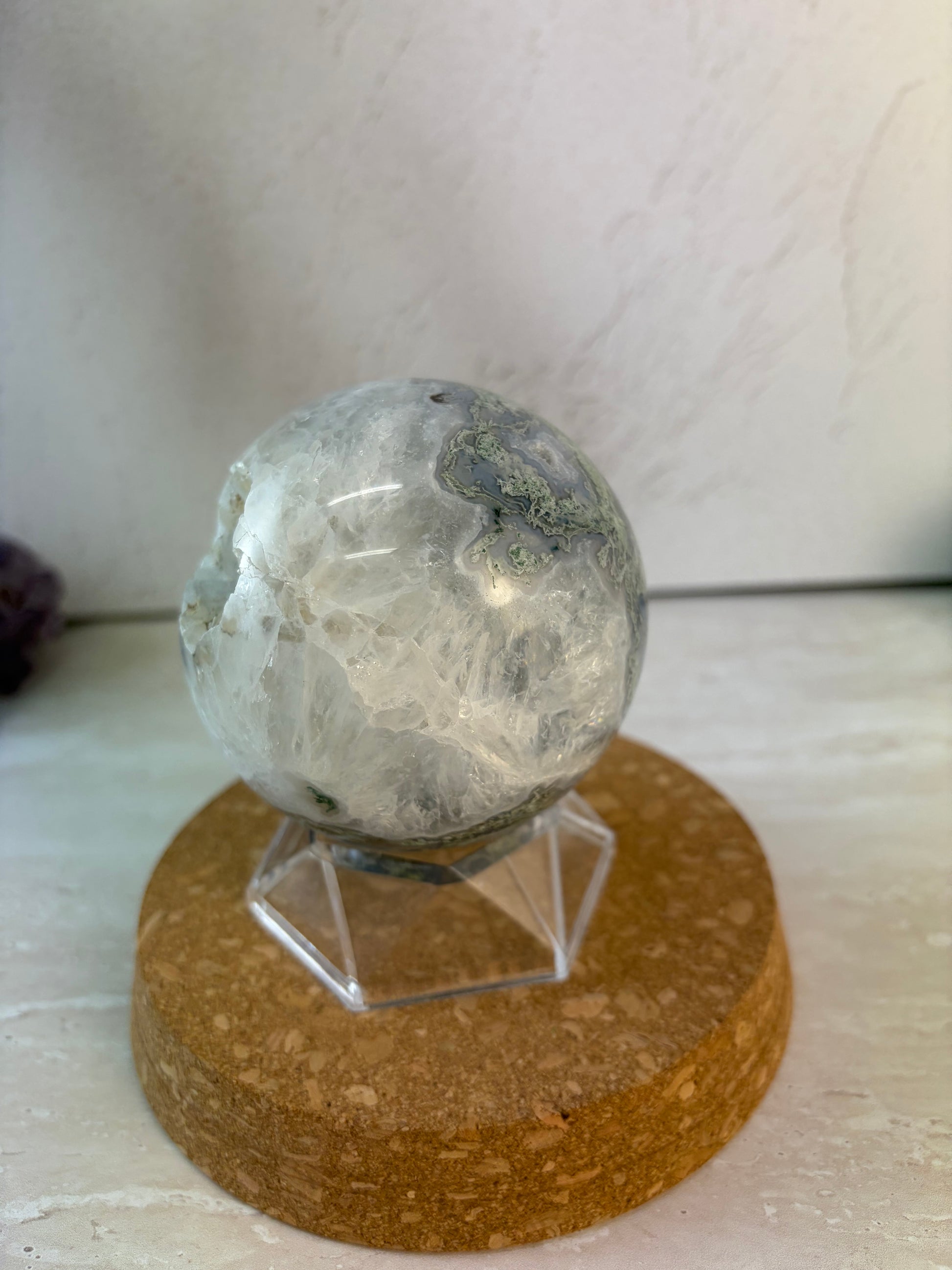 Moss agate and druzy sphere