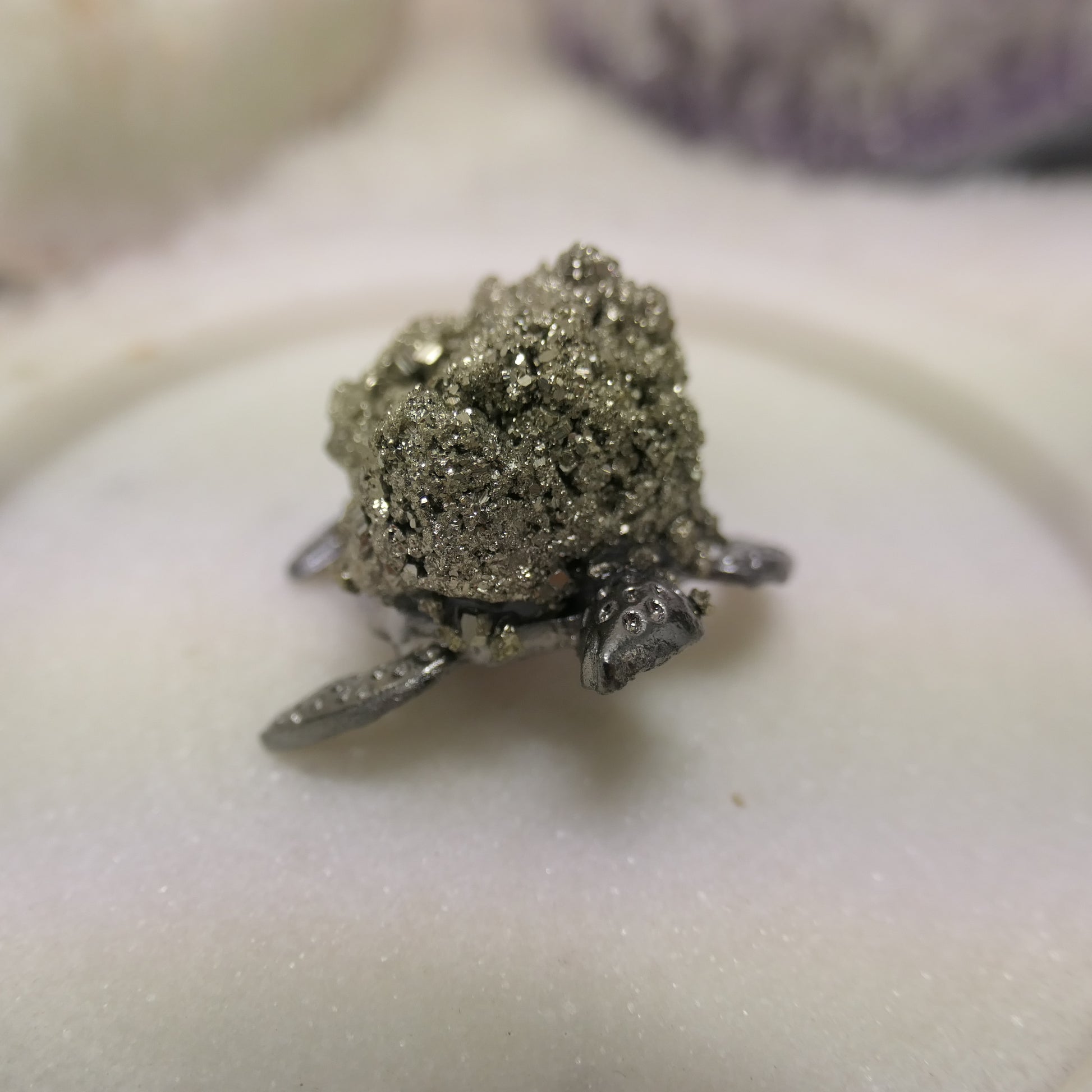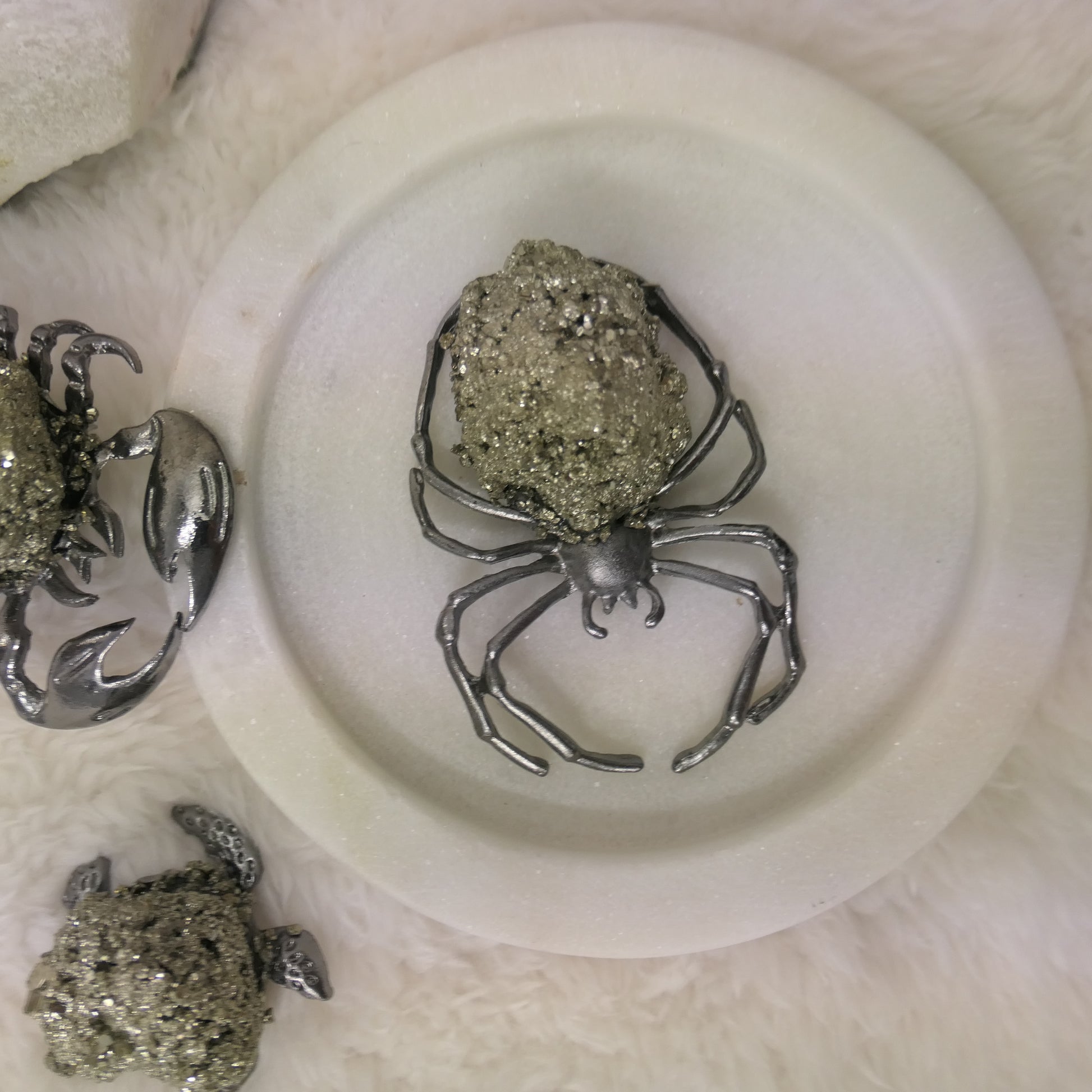 These unique pieces showcase pyrite's distinctive brassy-gold lustre and raw crystal structure, making each piece a unique sculpture.