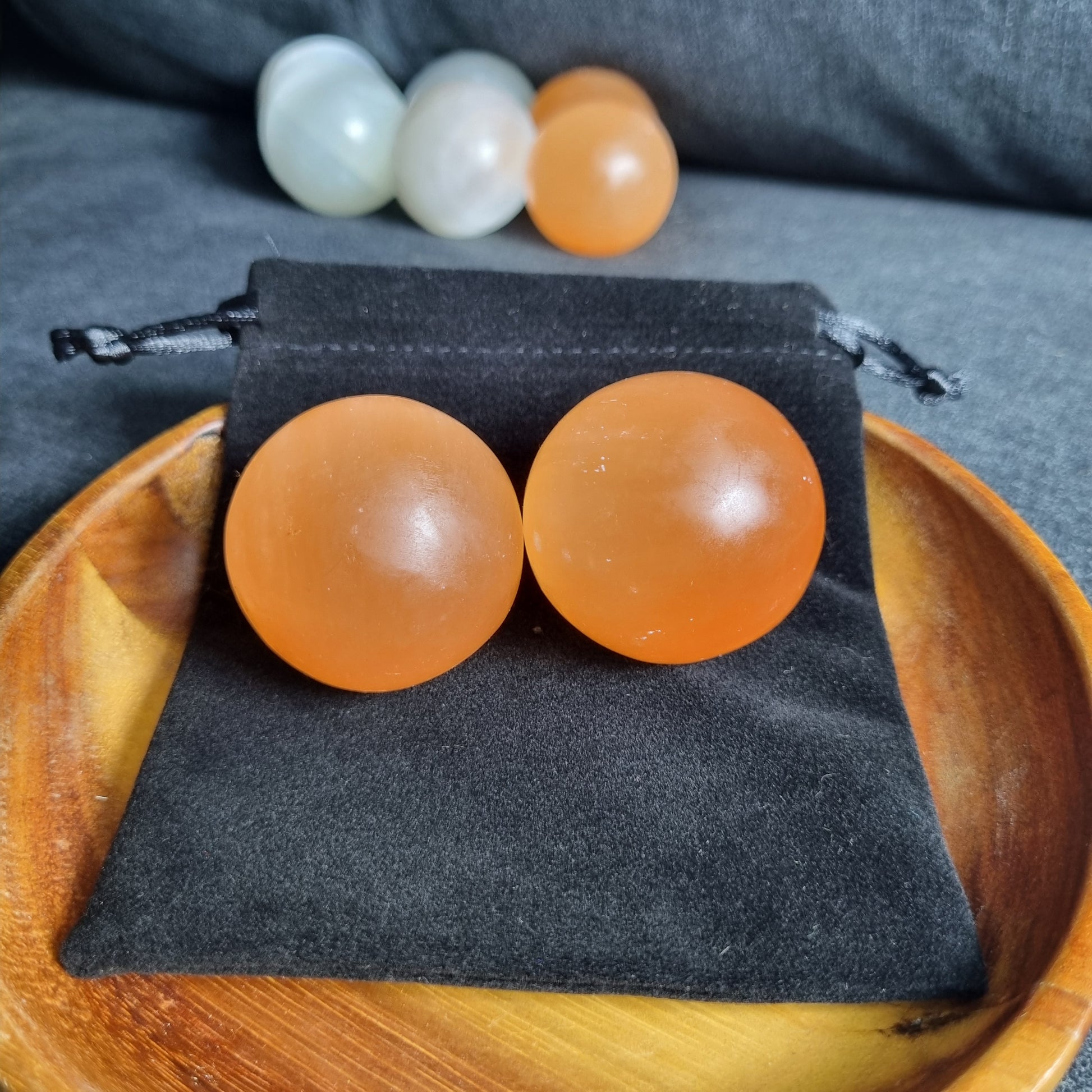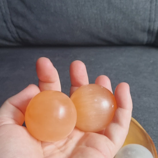 Each sphere is approximately 3-4cm and each set comes with 2 Selenite spheres in a pouch.