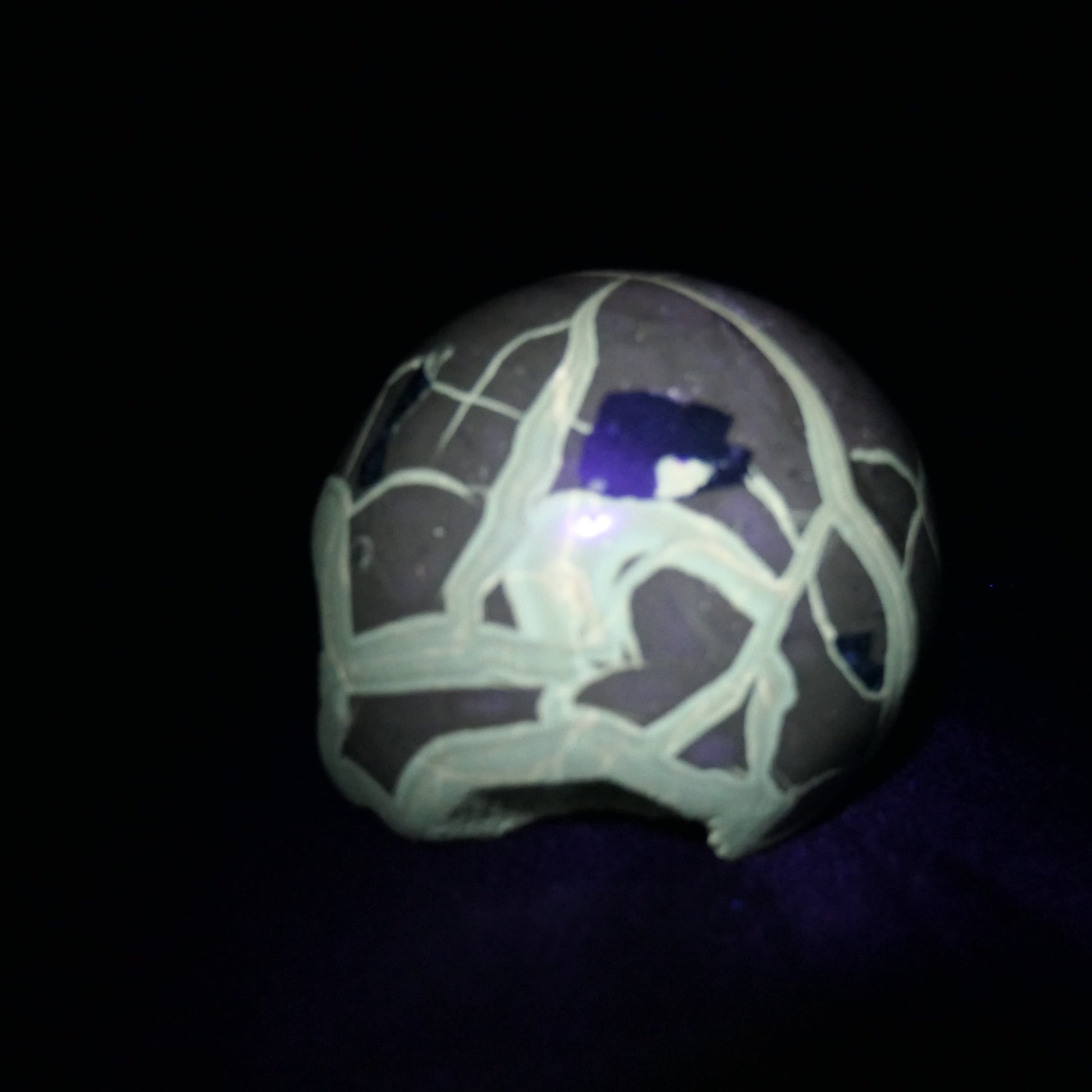 UV reactive and comes with a carved wooden stand. This piece is quite large and heavy so the stand does not support it to be displayed upright. She weight 1.278kg!