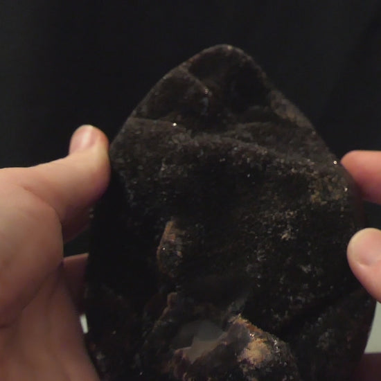 Velvet Septarian Egg, also known as Septarian Nodules or Dragon Stones, are fascinating minerals formed from a blend of minerals including calcite, aragonite, and limestone and is UV reactive.